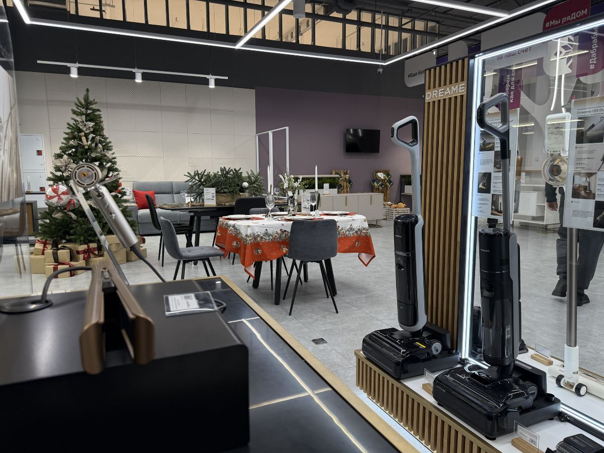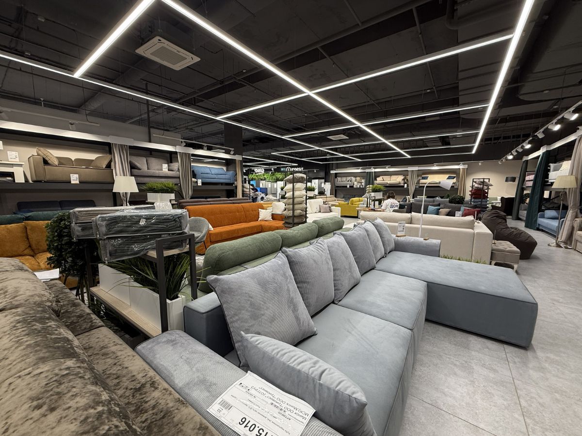 Два этажа, 2700 «квадратов» и больше 5000 товаров — так выглядит старт площадки. Формат напоминает шоурум: в зале уже собраны готовые интерьерные решения. Гостиные сменяются спальнями, кухни — рабочими и детскими зонами. Можно буквально пройтись по полноценной квартире, только собранной из ассортимента магазина.