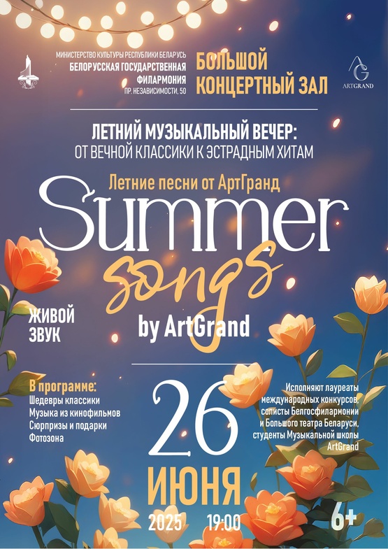 Лето, музыка, волшебство! Погрузитесь в атмосферу изящного летнего бала, где классика переплетается с эстрадными хитами, а знакомые мелодии звучат по-новому.