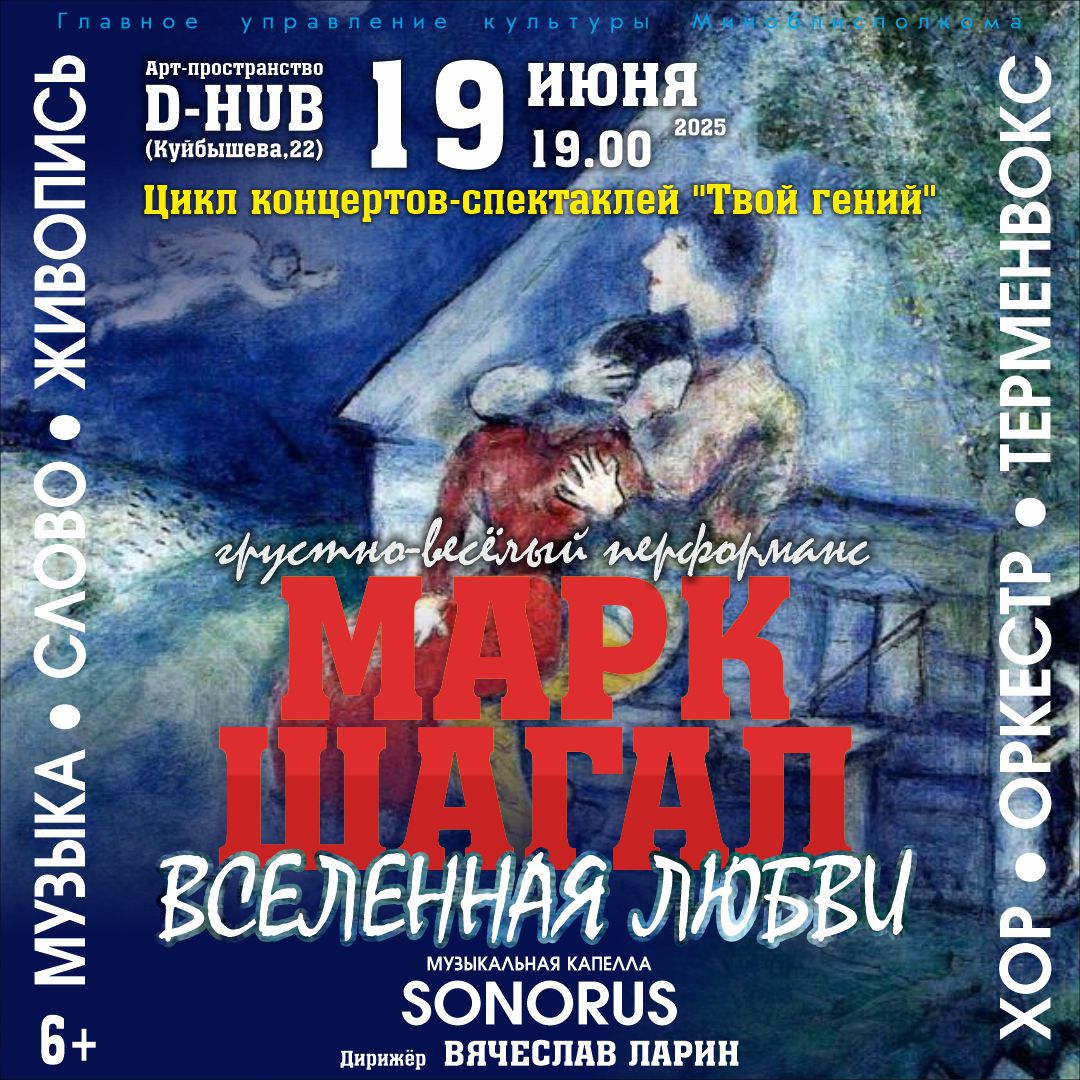 А благодаря звучанию хора, струнных и духовых в сочетании с проекциями картин художника, мы погрузимся в волшебную атмосферу Витебска, Санкт-Петербурга, Парижа, а затем и вовсе «улетим» в «шагаловское» пространство между реальностью и фантастикой!..