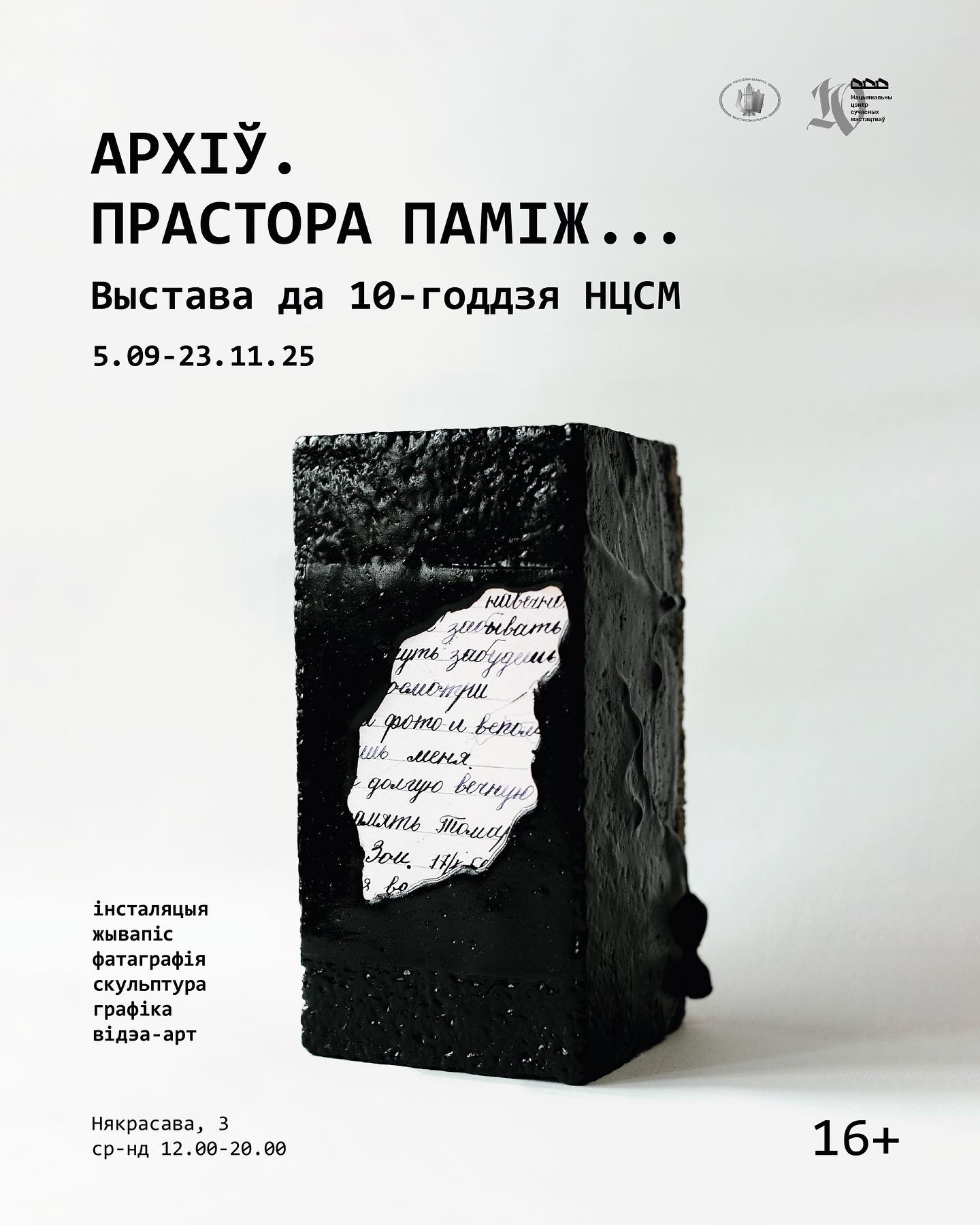 Нацыянальны цэнтр сучасных мастацтваў Рэспублікі Беларусь у 2025 годзе адзначае 10 гадоў сваёй дзейнасці, за час якой ён стаў пляцоўкай для знаёмства з актуальнымі мастацкімі практыкамі і міждысцыплінарнымі праектамі. У гонар юбілею прадстаўляецца выставачны праект «Архіў. Прастора паміж…». Гэты праект, які ўключае арт-аб’екты, жывапіс, інсталяцыі, відэа, гук і перформанс, запрашае гледача да сумеснага пераасэнсавання рэчаіснасці і эмацыйнага перажывання. «Архіў» тут разглядаецца як крыніца натхнення для мастака, спосаб фіксацыі зменлівага і адначасова як сімвал культурнай пераемнасці і прыналежнасці.