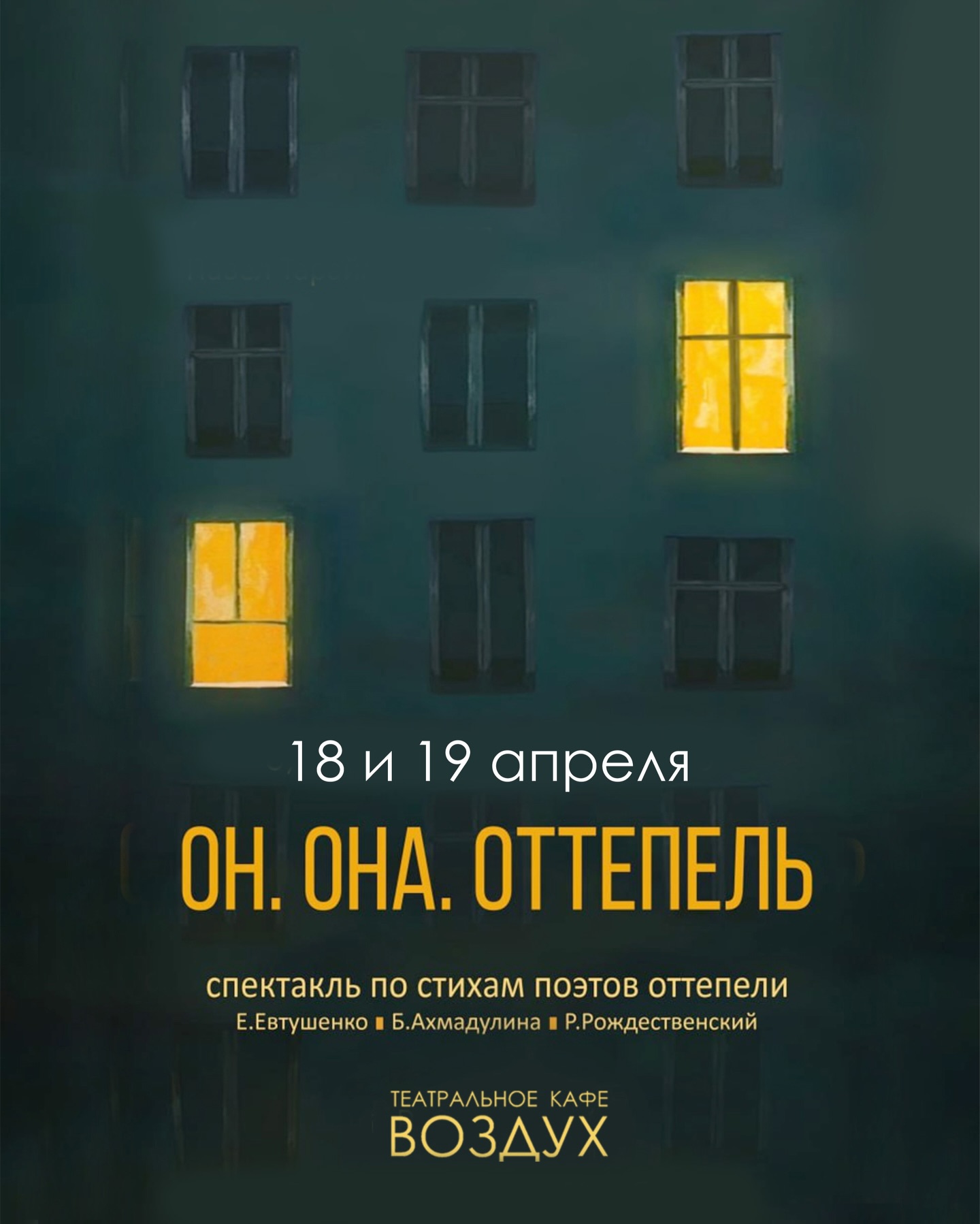 На сцене Театрального кафе «Воздух» @teatrvozduh.cafe пройдет уникальная постановка по стихам поэтов оттепели. Вы услышите стихи знаменитых поэтов: Евтушенко, Ахмадулиной, Рождественского.