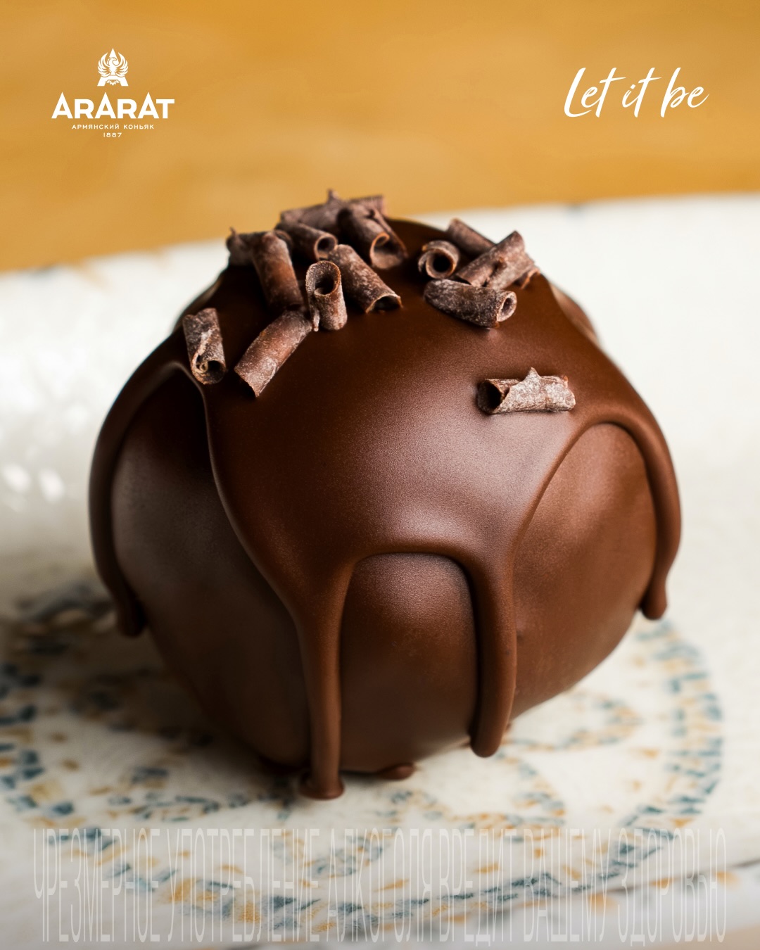 Центр композиции делит ванильный ганаш и пикантное вишневое компоте, оттененное выдержанным ARARAT Akhtamar.