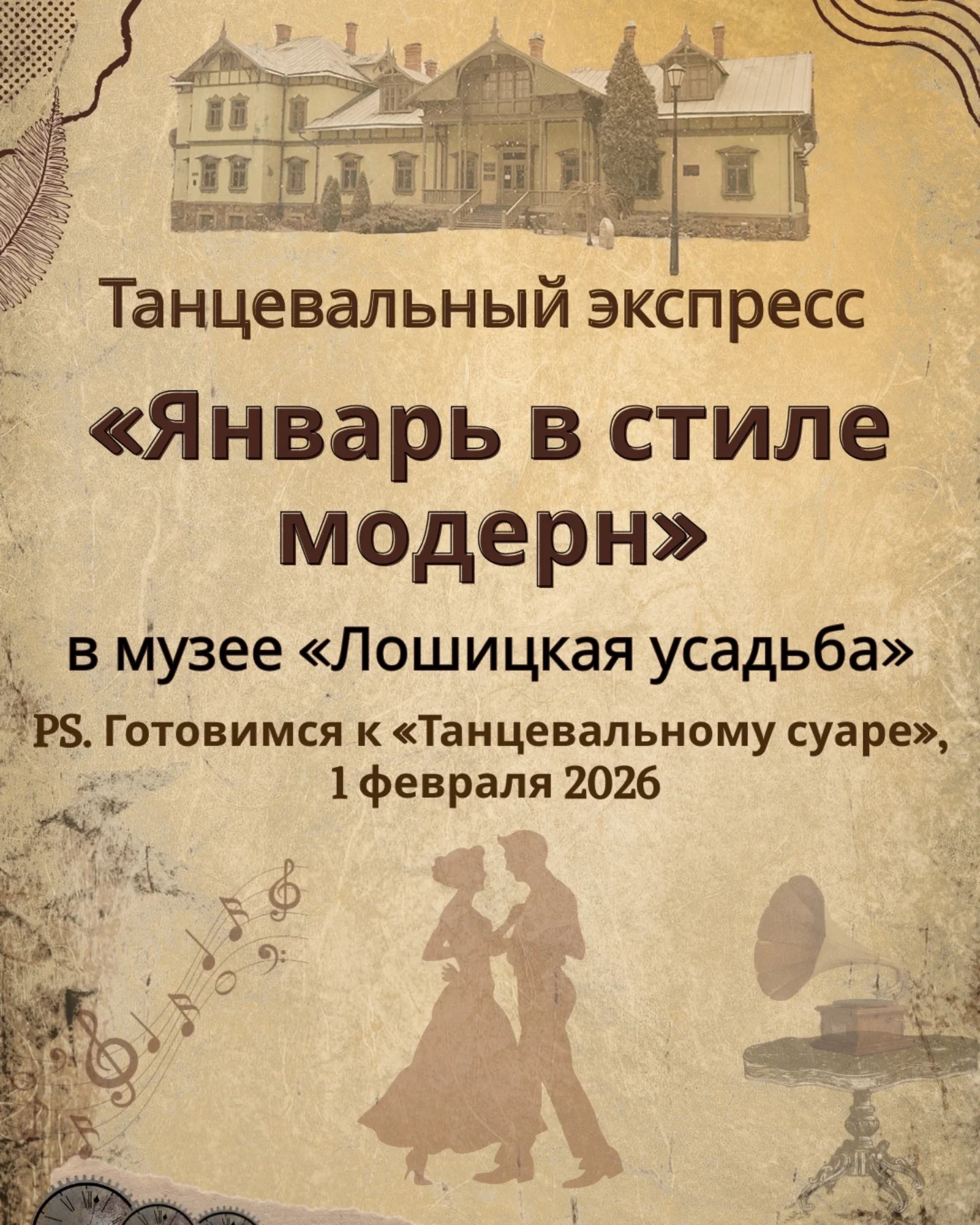 В январе музей «Лошицкая усадьба» приглашает вас погрузиться в изысканную атмосферу Минска рубежа XIX–XX веков. Наш новый проект — это уникальное сочетание истории, архитектуры и танцевального искусства эпохи модерна.
