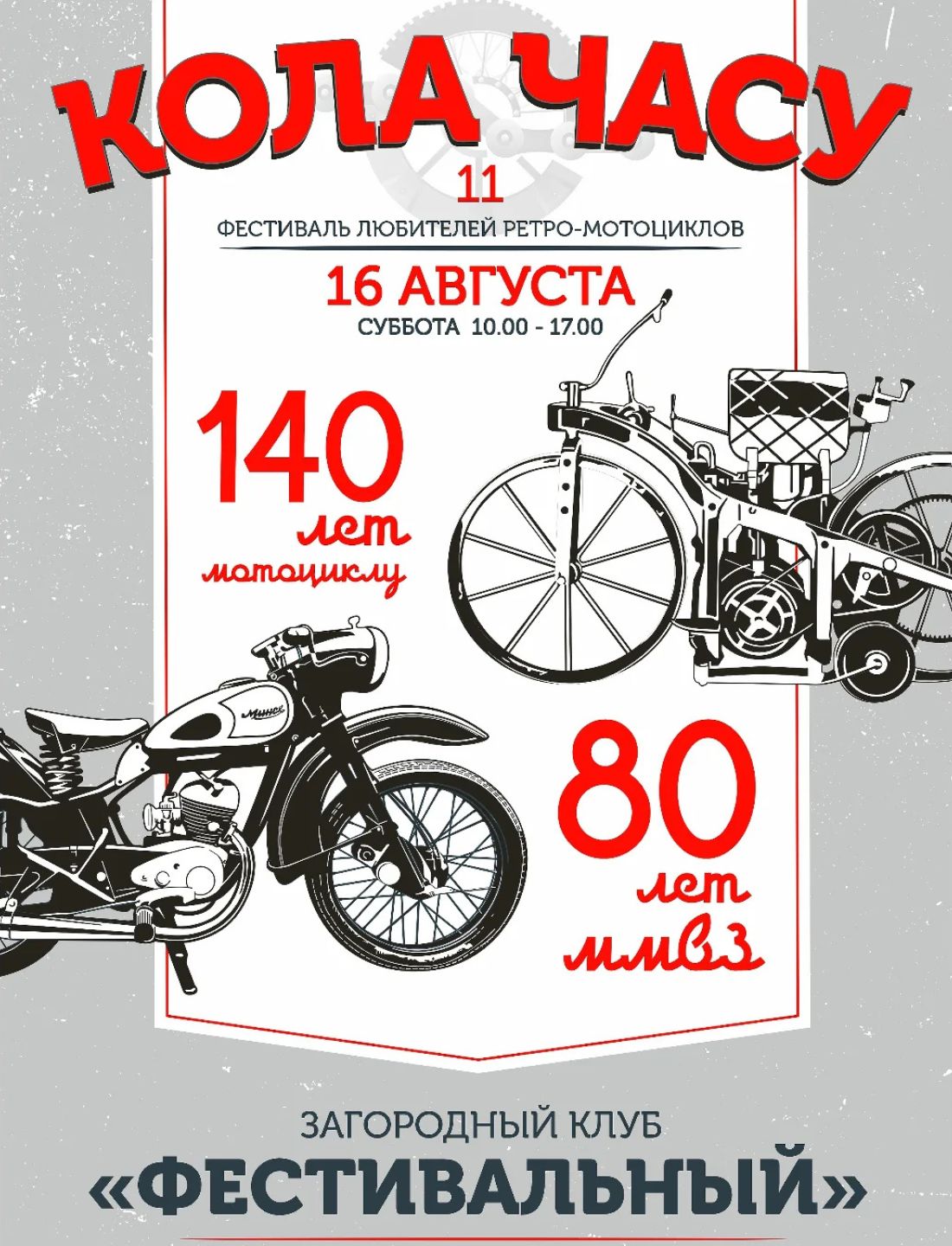 В этом году фестиваль будет посвящен двум грандиозным юбилеям: 140-летию первого в мире мотоцикла с двигателем внутреннего сгорания и 80-летию легендарного Минского МотоВело Завода (ММВЗ).