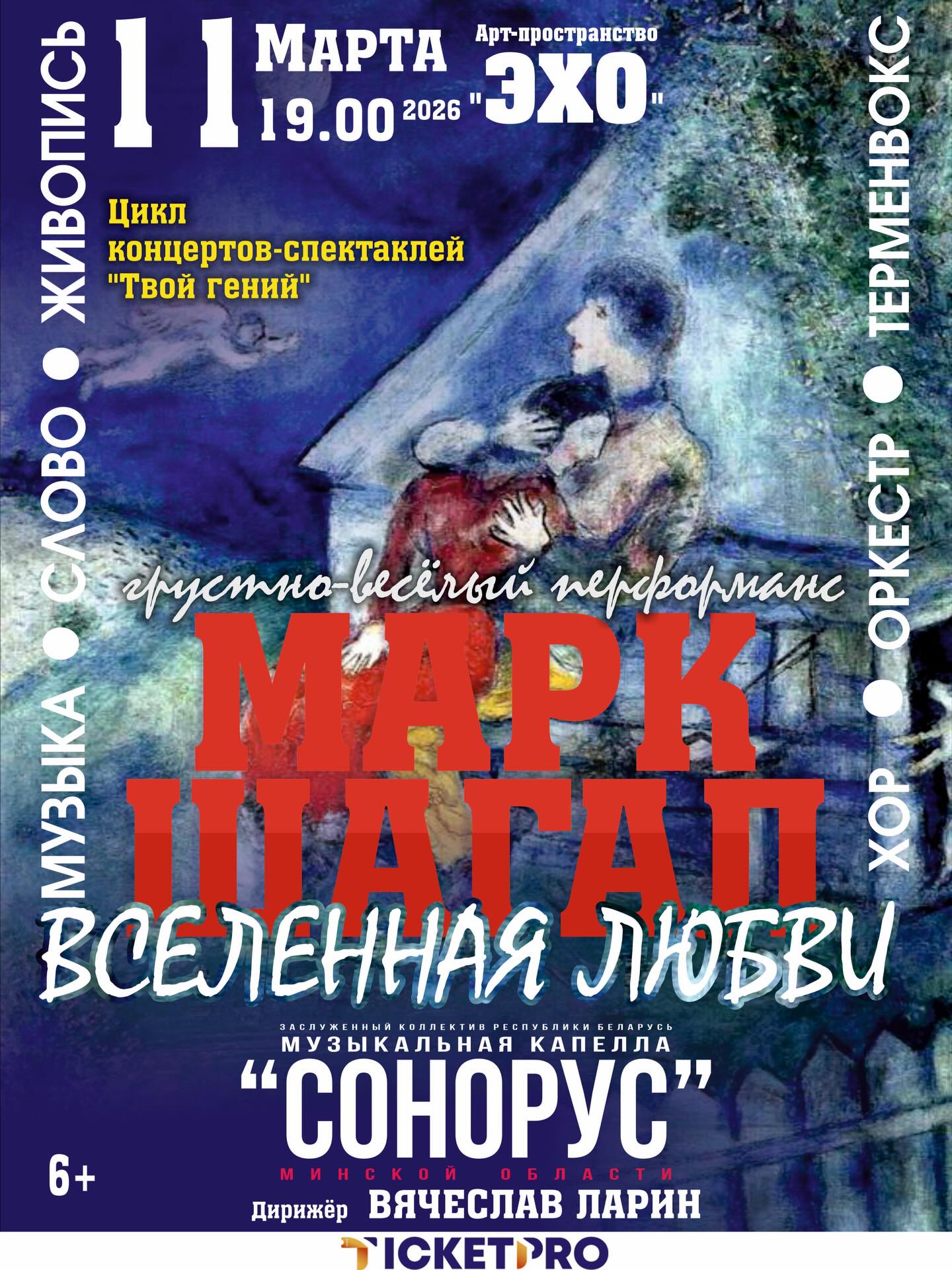 11 марта в Арт-пространстве «Эхо» состоится удивительный музыкальный перформанс о жизни, творчестве и любви человека, «родившегося между небом и землёй» — Марк Шагал Вселенная любви!