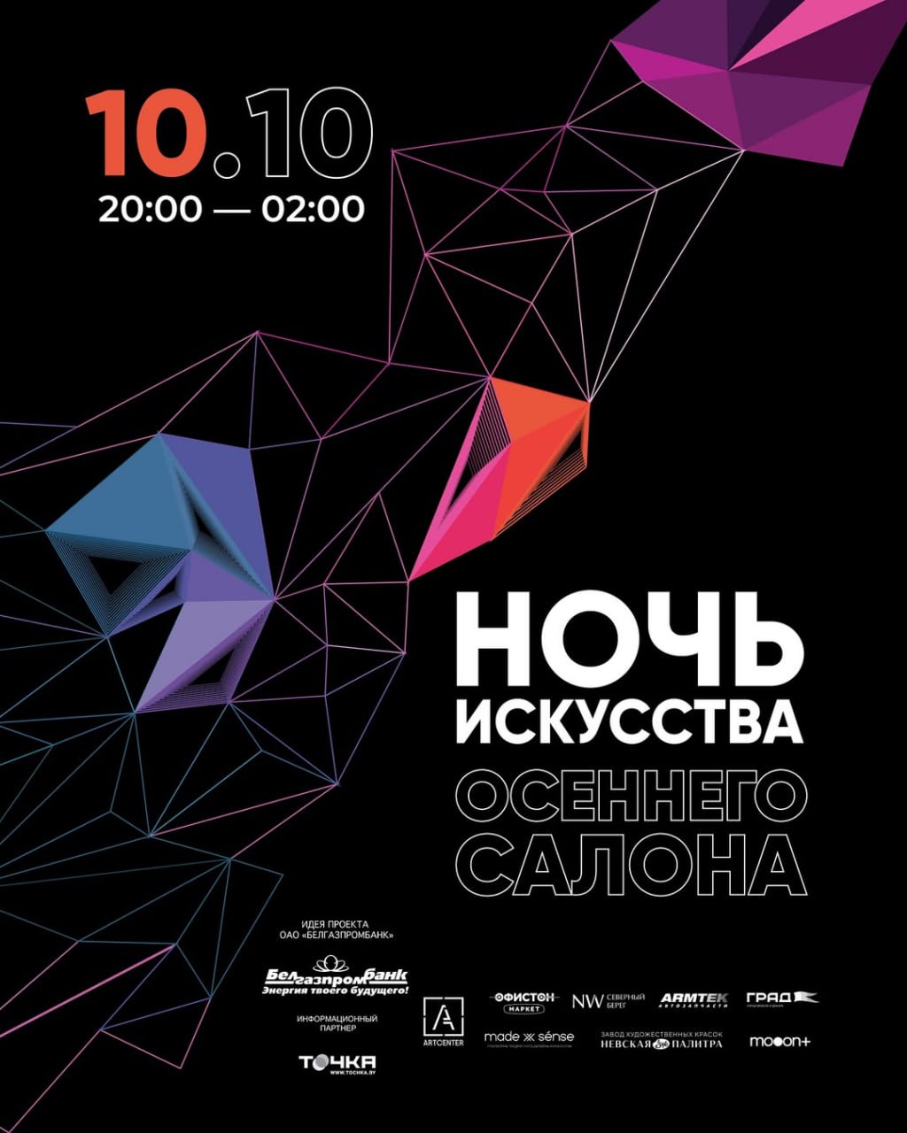 Минск готовится к арт-событию: в рамках выставочного проекта «Осенний Салон с Белгазпромбанком» состоится «Ночь Искусства». Мероприятие пройдет 10 октября и предложит публике уникальную возможность познакомиться с экспозицией в совершенно особой атмосфере — с 20:00 до 02:00.