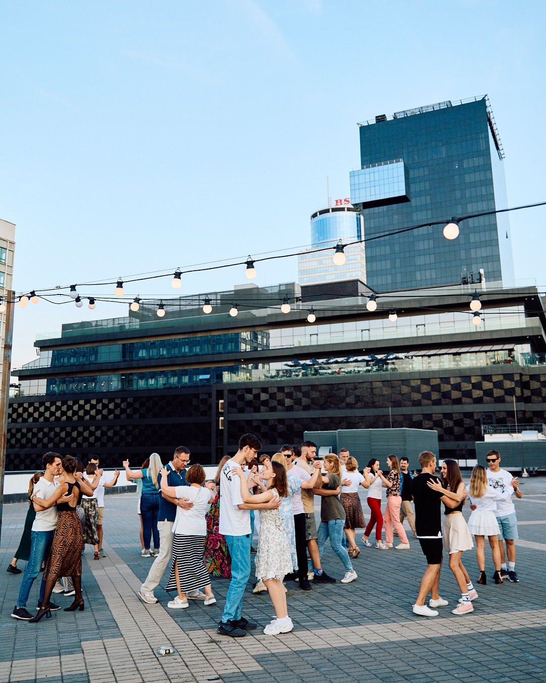 Всё лето по пятницам в 19:00 мы будем ждать вас на крыше паркинга на танцевальные мастер-классы с преподавателями, старейшей школой танцев Беларуси, специализирующейся на парных социальных танцах для взрослых.